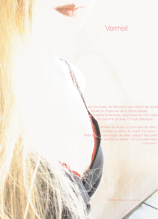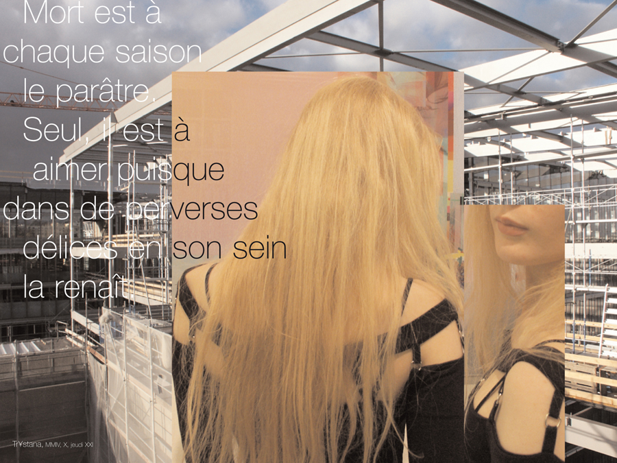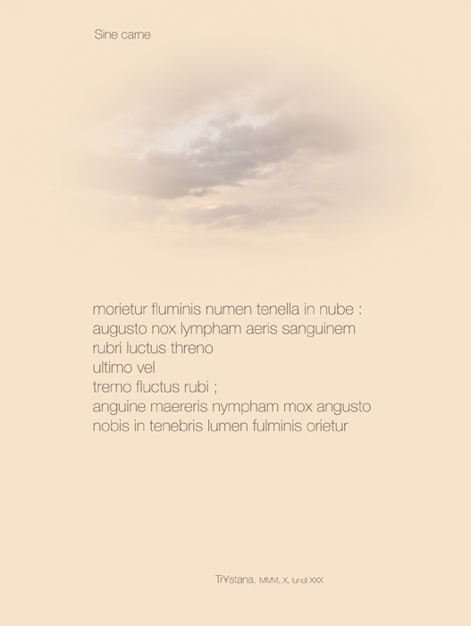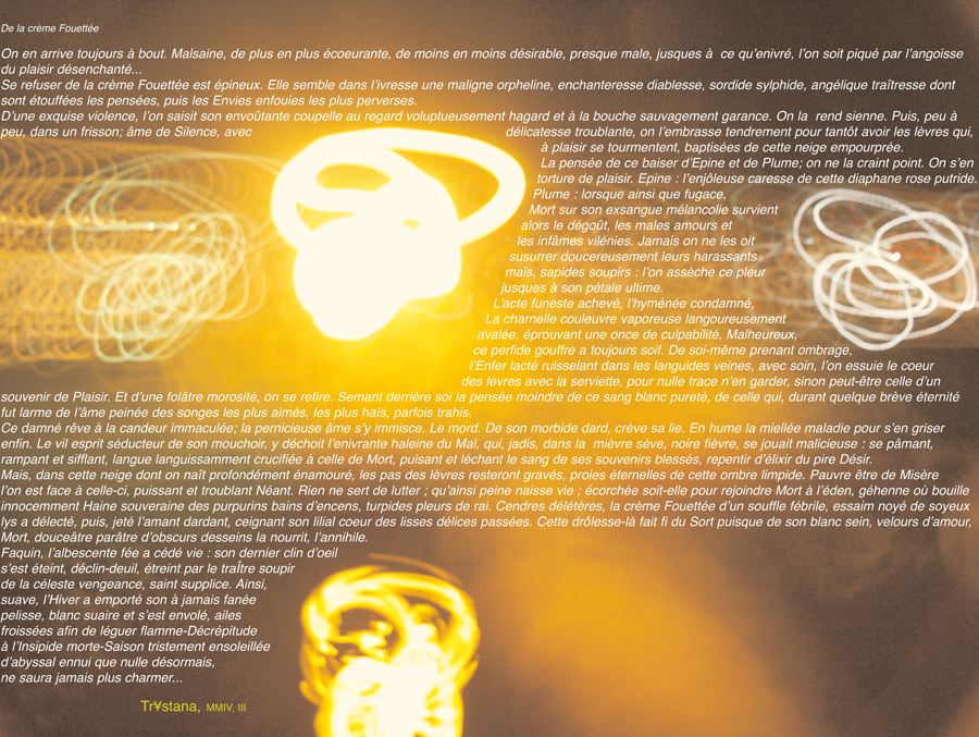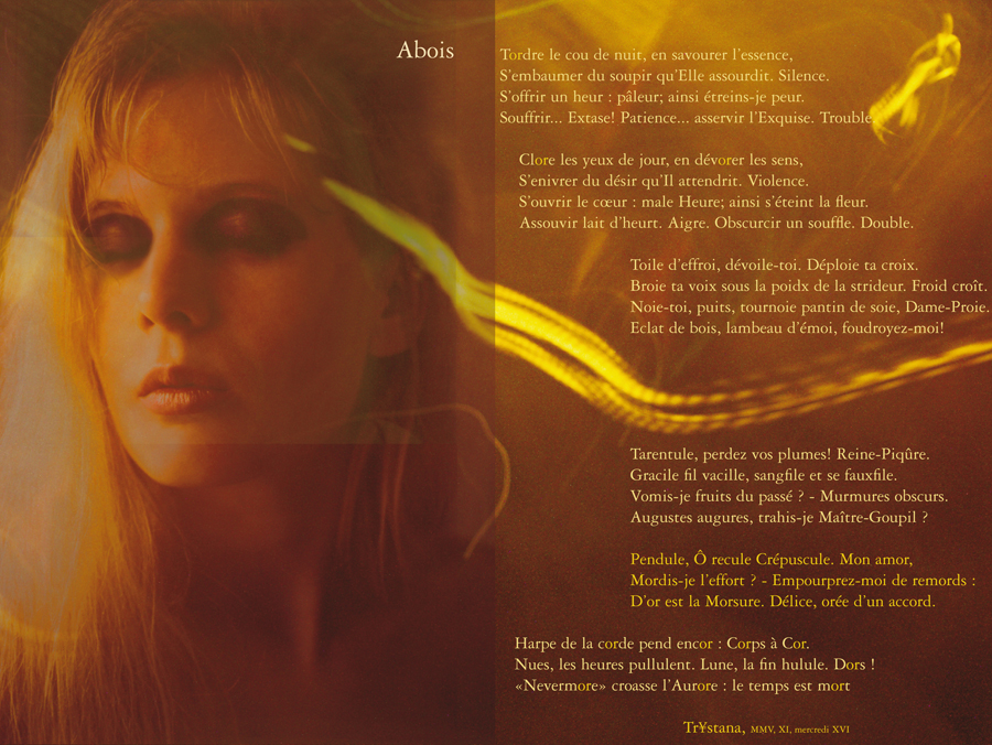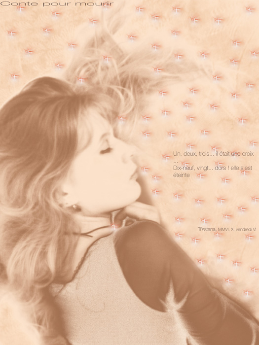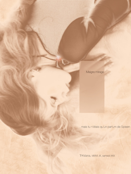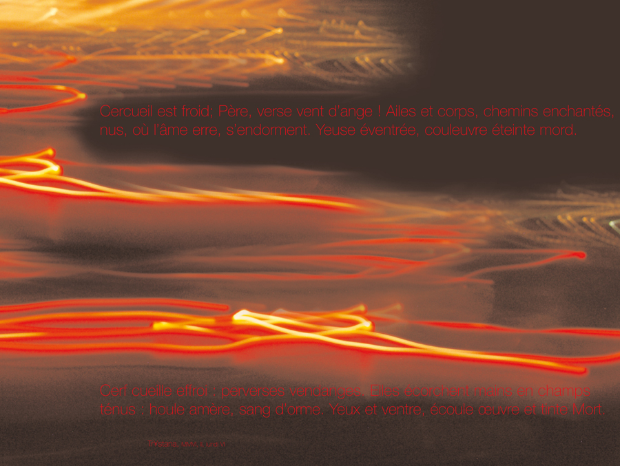 « Remembrance du Temps à travers la Mort » est le fruit d’une étroite collaboration : l’image et l’intégration du texte à l’image ont été réalisées par le maître d’après les suggestions de l’étudiante, le texte étant de son stricte ressort. L’étudiante a signé son travail du pseudonyme de Trystana.