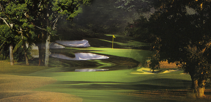 Si nous reprenons notre marche, du centre vers le haut de l’image, vers les lointains insulaires (au niveau du « bonzaï »), nous traversons le Wailea Golf Resort d’Hawai, avec une vue, à droite, sur le Ria Bintan Resort indonésien. Nous devrions pressentir, alors, que le Casa de Campo Resort, au bord de la mer des Caraïbes, en République dominicaine, n’est pas loin.