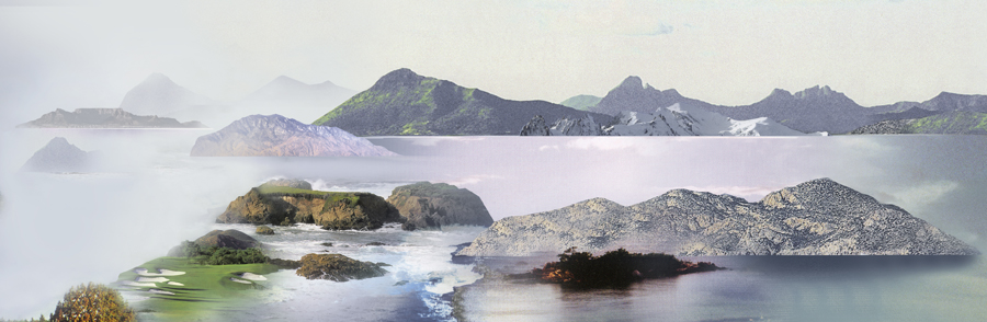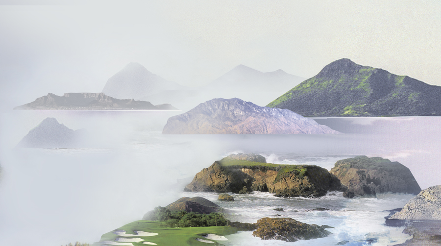 Après un tel voyage initiatique au Paradis du golf, nous sommes prêts à explorer, sans réserve, les confins de l’espace marin… là, où les montagnes des continents se transforment en îles… telles, celles ici, californienne de Mission Hills Country Club, sud-africaine de Table Mountain du Parc national de Cape Town, ou, encore, celle du massif du Mont-Blanc… et, un peu plus loin encore… cet espace onirique où les îles de notre imaginaire se métamorphosent en labyrinthe de « parcours » de rêve…