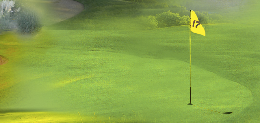 En dessous, le drapeau (17) pourrait aussi bien appartenir au Golf du Domaine de Divonne qu’au Monument Golf Course de Troon North, à Scottsdale, dont on aperçoit un fragment de bunker, tout devant, à droite, sous la balle qui attend d’être jouée.