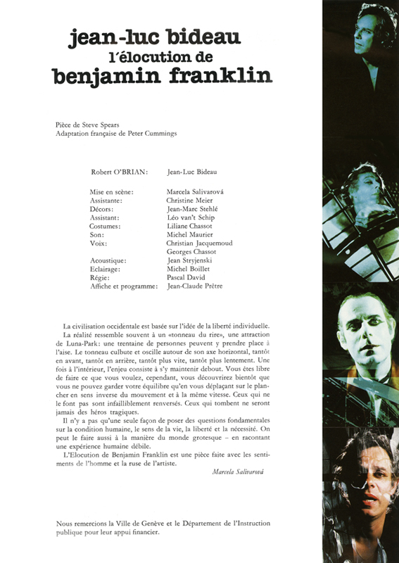 jean-luc bideau, l'élocution de benjamin franklin, 1984, programme (couverture), affiche, affichette