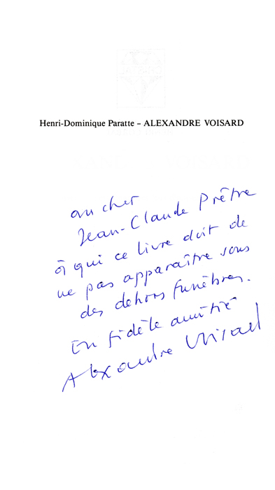 C’est cet ouvrage spontanément acquis par Alexandre Voisard qui scella le début d’une amitié profonde.