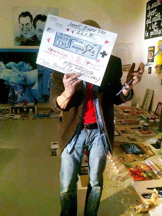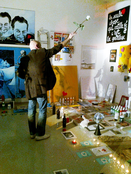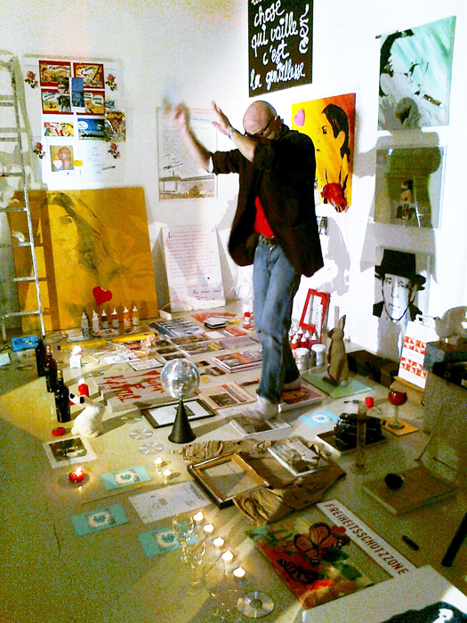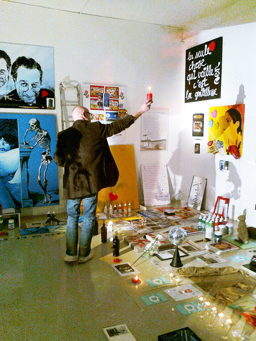 JEAN-CLAUDE PRÊTRE rend hommage à son marchand genevois, ami et artiste Joseph Farine, en présentant les photographies qu’il a faites de l’installation et de la performance « HOMMAGE À SAINT-JOSEPH » de celui-ci – à la Galerie Andata.Ritorno, laboratoire d’art contemporain – le 19 mars 2011.