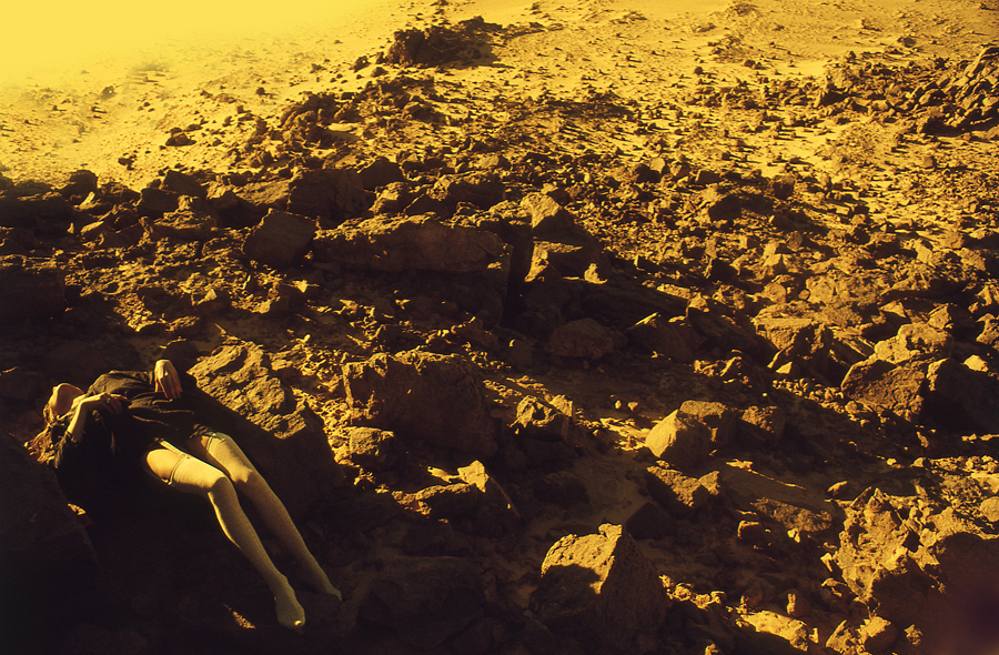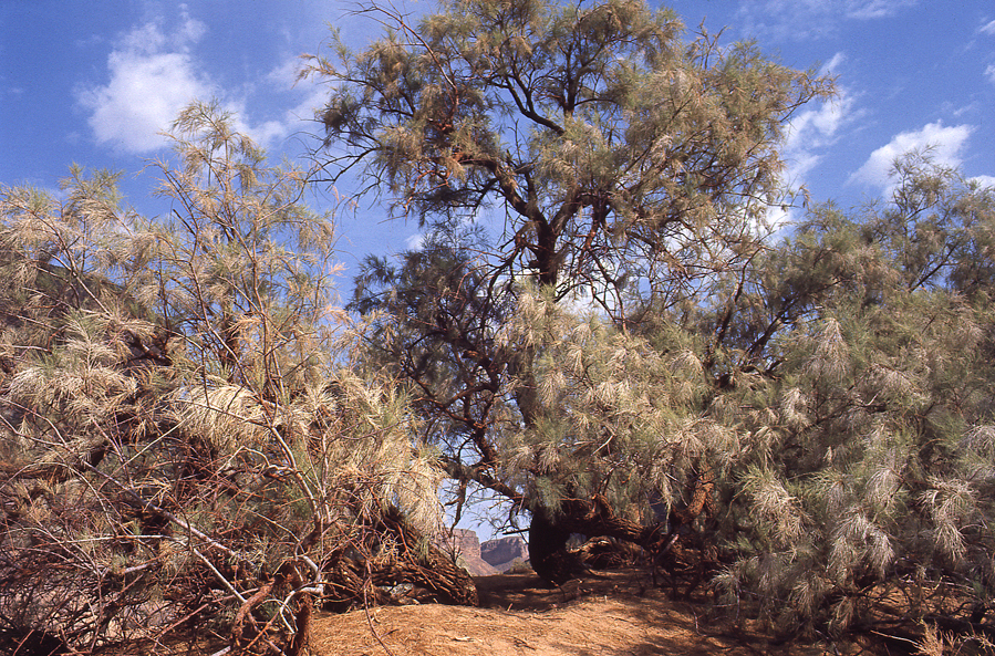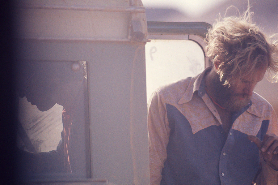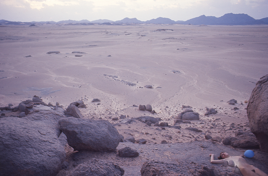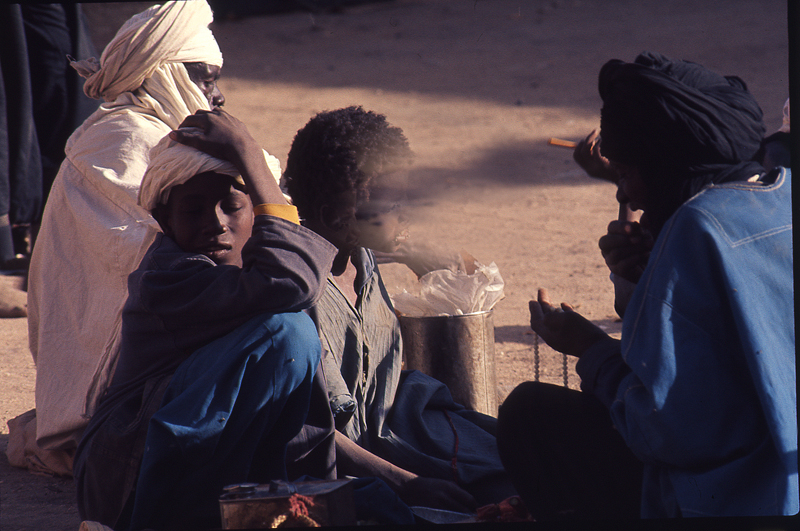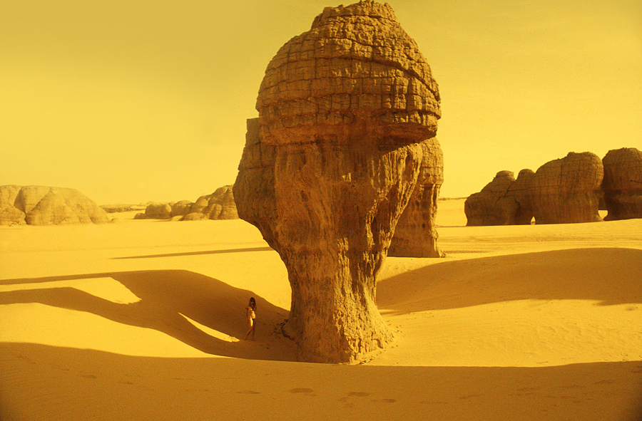 La piste des caravanes, à mi-chemin entre Agades et Bilma (700 kms), passe par l’arbre défunt du Ténéré, un acacia. Sa disparition, en 1973, l’année du voyage, fut interprétée par le groupe comme un mauvais présage… Durant plusieurs jours, la tempête de sable empêcha les véhicules de progresser… ce qui alimenta la montée d’une inquiétude, d’une paranoïa latente en chacun…