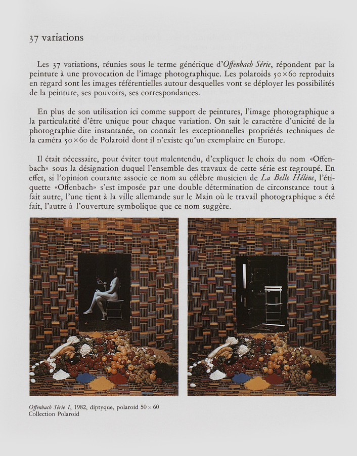 Offenbach Série est une série de 37 œuvres à l’intérieur de la Série Polaroïd commencée dès juin 1978 avec la caméra SX70.