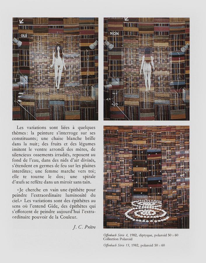 Offenbach Série est la cinquième exposition personnelle de Jean-Claude Prêtre à la Galerie Bettie Thommen de Bâle dans le cadre de la foire ART BASEL 14’ 1983.