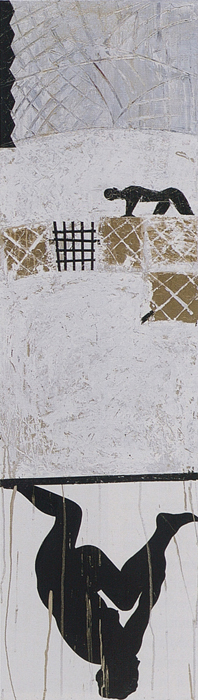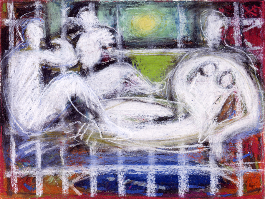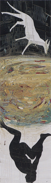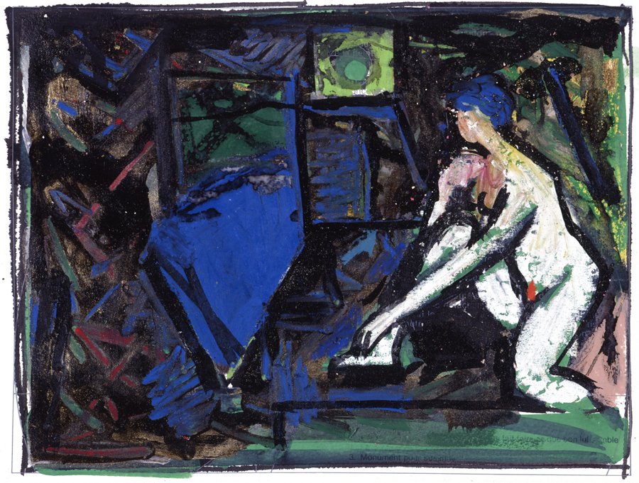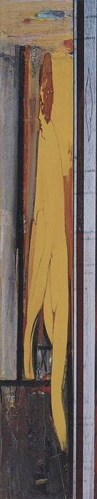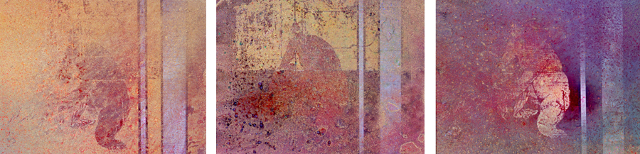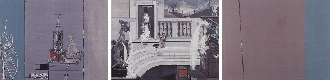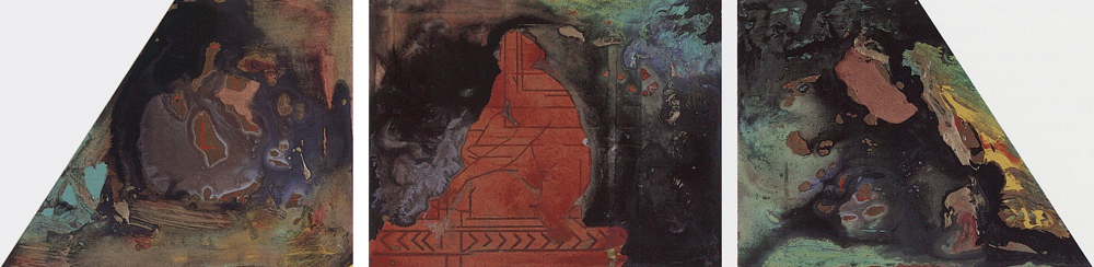 (…) Le troisième tableau a non seulement pour finalité de traduire le thème par la seule couleur et une structure minimale, mais, par son dépouillement et par contraste, de renvoyer à l’image centrale et à la relecture de l’ensemble.