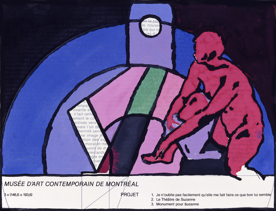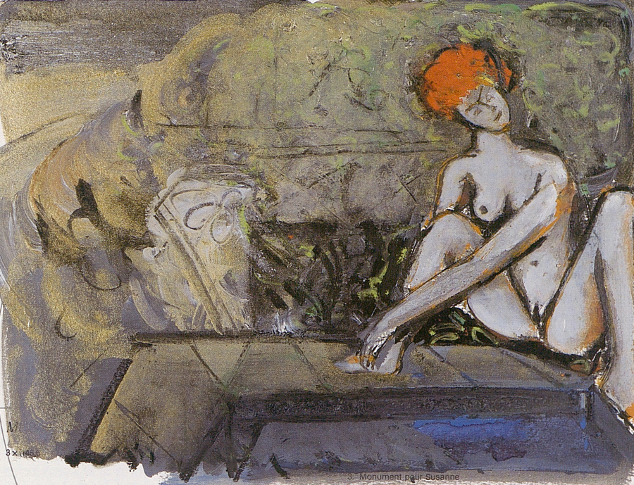 (…) Le triptyque Suzanne pour mémoire commandé par le Fonds de décoration pour le Pavillon d’imagerie médicale de l’Hôpital cantonal représente trois moments historique de l’iconographie de Suzanne.