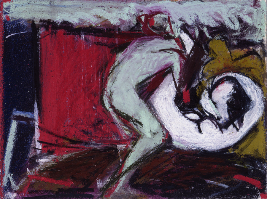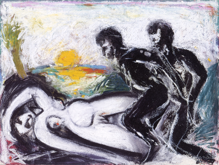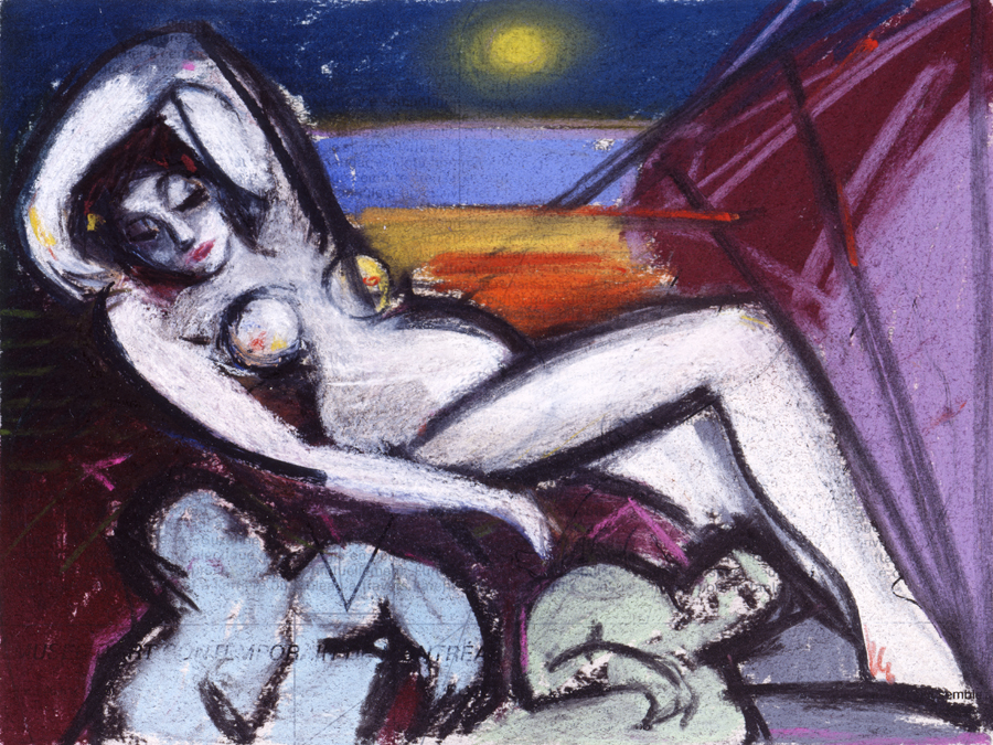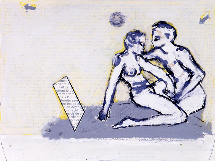 Ce sont ces altérations qui se projettent et se peignent, 121 fois, dans les cadres de ces 121 Suzanne. Mais, quelle que soit la liberté d’invention dont chacune de ces créations témoigne, Suzanne s’oublie, se réinvente, se recherche, se retrouve, chez Prêtre (à mes yeux en tous cas) selon un processus dont le principe était déjà inscrit, et comme prescrit, dans la construction du tableau de Tintoret. Apparemment docile à tous les caprices, assujettie aux quatre volontés de son nouveau maître, qui semble disposer sur elle d’un pouvoir aussi absolu que celui que Sade prête aux quatre scélérats de ses 120 Journées, elle est, en fait, 121 fois maîtresse du jeu qu’il joue avec elle en peinture.