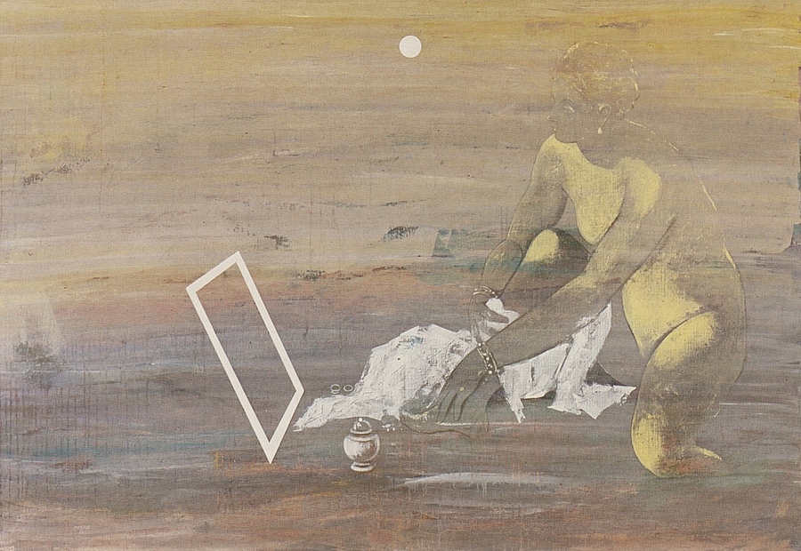 Je n’oublie pas revient, chez J.-C. Prêtre. Sept fois, dans ses premières Suzanne, le thème réapparaît, rappelant sept fois qu’il s’oublie, s’affaiblissant, s’éloignant, s’effaçant, comme à la limite de la mer un visage de sable. A la septième, un écran blanc, sans image. J’oublie tout ? Je repars à zéro ? Rien n’est plus là où je m’imaginais voir quelque chose. Je sais bien. Mais quand même. Je n’oublie pas. Pas possible. J’ai beau tenter de lui faire faire tout ce que bon me semble, je n’oublie pas qu’elle me fait faire tout ce que bon lui semble. Que mon désir, c’est le désir de l’Autre. Que ce qui cause mon désir, c’est de me faire l’objet du sien. J’ai beau jeter sur elle un voile d’oubli, elle est là, toujours, présente sous le voile. J’ai beau recouvrir ce voile de peinture, je la redécouvre en peinture. Mais la redécouvrant en peinture, je redécouvre la peinture. Il faut céder aux vœux des mortes couronnées…