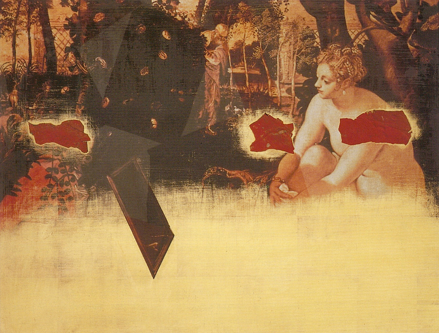 Le tableau du Tintoret contient dans son articulation tout un système de virtualités que seul un autre artiste peut manipuler. Le thème biblique facilite évidemment l’opération. De même que Suzanne est contemplée par les vieillards, de même la peinture – dans sa nudité – devient l’objet des regards du monde profane.