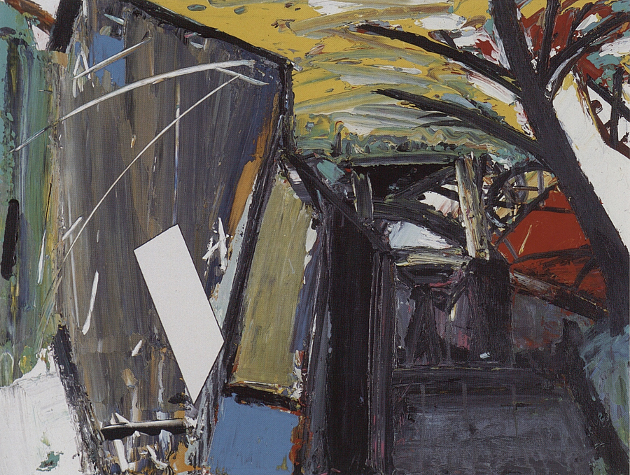 A en croire cette peinture, le visible n’est pas un. Il n’est ni unifié ni unifiable. Toujours, par quelque côté, il échappe. L’œil ne le totalisera pas. Pas de point focal ici. Pas de point de fuite unique pour la perspective. Comment le peintre moderne pourrait-il espérer tout tenir ensemble d’une main ferme dans la résille d’une géométrie sans défaut? Comment l’art de peindre, aujourd’hui, donnerait-il l’illusion que, ce monde-un, on pourrait le posséder d’un seul bloc par la vue, comme les vieillards de la légende voudraient posséder, nue, Suzanne? »