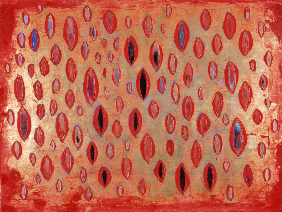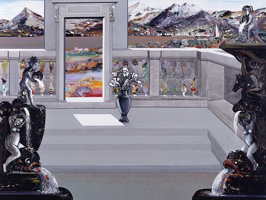 Cette formulation a quelque chose de fiévreux et ne se laisse pas entraver par le respect philologique. Elle devient un processus créatif qui met en scène une multiplicité de styles émanant du miroir jusqu’à se détruire elle-même. Nouveaux éléments et nouvelles figures s’entrecroisent sur la surface des 121 tableaux, comme pour signifier la prolifération d’un langage qui ne connaît pas de séparation entre abstraction et figuration, entre organique et géométrie.